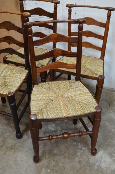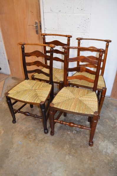 Rush chairs can appear deceptively simple to restore, however each rush varies in thickness and the rushes have to be woven together expertly to maintain a uniform, neatly woven appearance. There is an enormous difference between the finished product of an expert and even a craftsperson of moderate skill. The woven rush should be of uniform and also the pattern should be uniform with no gap in the centre of the seat and no sagging.